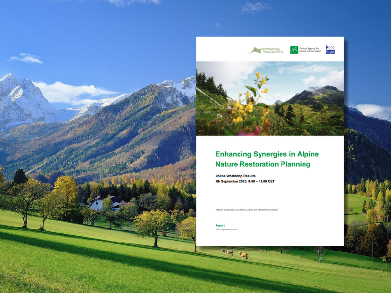 The workshop summary illustrates the added value of cross-border coordination for achieving an ecologically coherent and resilient Alpine landscape. The consolidated draft text developed during the workshop serves as a reference document for the National Restoration Plans of both EU Member States and non-EU Alpine countries. Furthermore, the report emphasises the need to continue the dialogue initiated under the leadership of the Alpine Biodiversity Board, and to actively integrate the workshop’s results into national planning processes as well as into broader Alpine and international biodiversity initiatives.