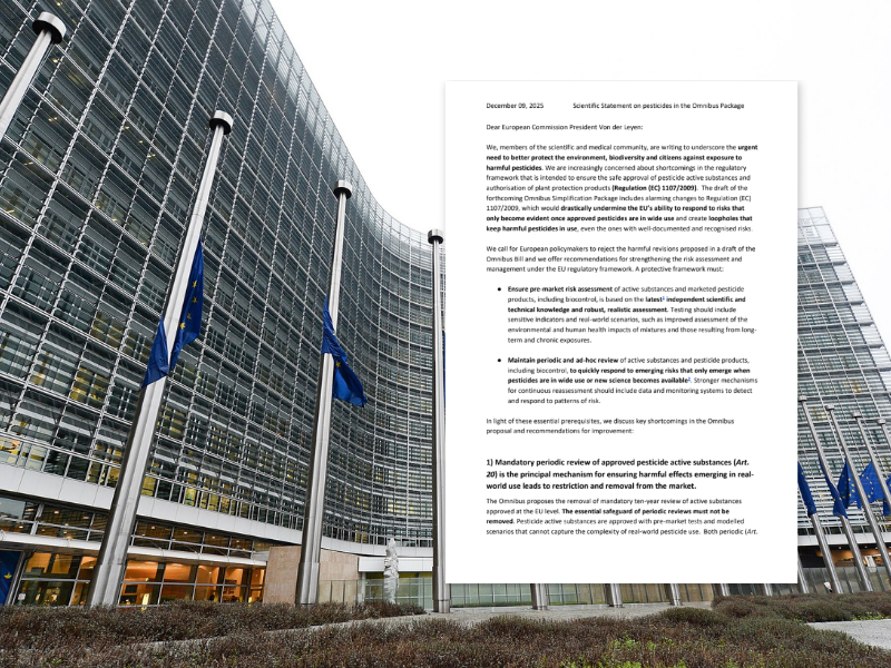 An independent scientific statement, led by Dr. Lindsey Hendricks-Franco (Ecologic Institute) and co-signed by more than 200 researchers and medical professionals across Europe, has been addressed to European Commission President Ursula von der Leyen. The statement warns that proposed amendments to Regulation (EC) No 1107/2009 on plant protection products included in the draft Omnibus Simplification Package could weaken fundamental safeguards in pesticide risk assessment, with implications for environmental protection, biodiversity and human health.