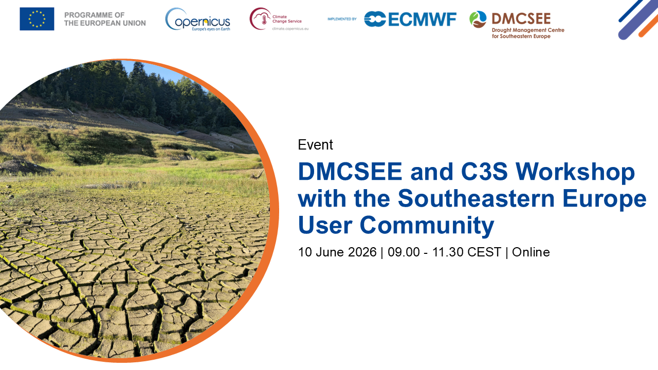 The Copernicus Climate Change Service (C3S), with the support of the Drought Management Centre for Southeastern Europe (DMCSEE), is organising an online workshop on the use of climate data and services for drought monitoring in Southeastern Europe.