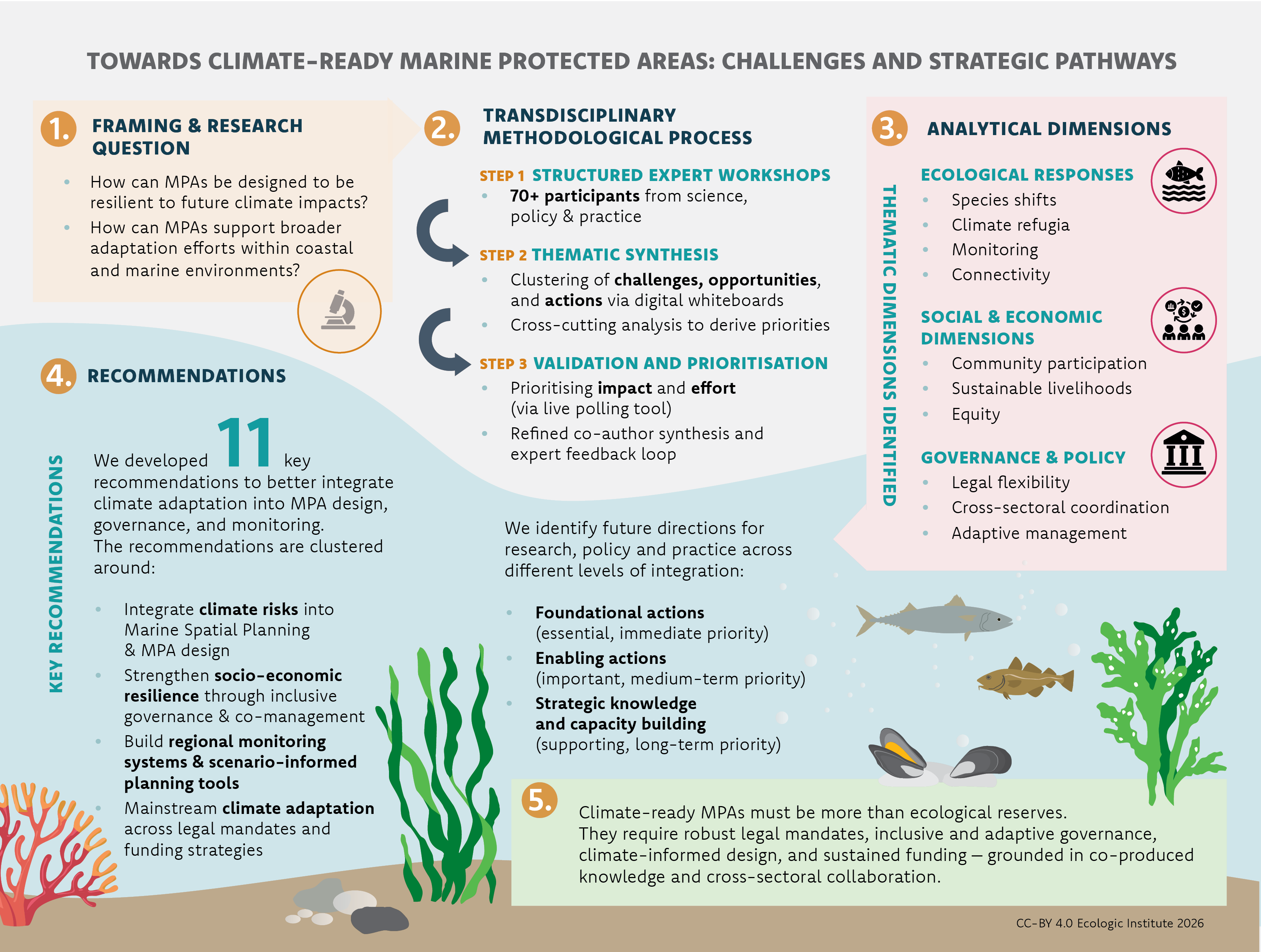 Ecologic Institute (2026): Towards climate-ready marine protected areas: challenges and strategic pathways. Infographic (Fig. 1) in: Fuchs, G., Stelljes, N., Kroos, F. et al. (2026): Towards climate-ready marine protected areas: challenges and strategic pathways. npj Ocean Sustainability, 5, 15. https://doi.org/10.1038/s44183-026-00184-3. Licensed under CC BY 4.0.