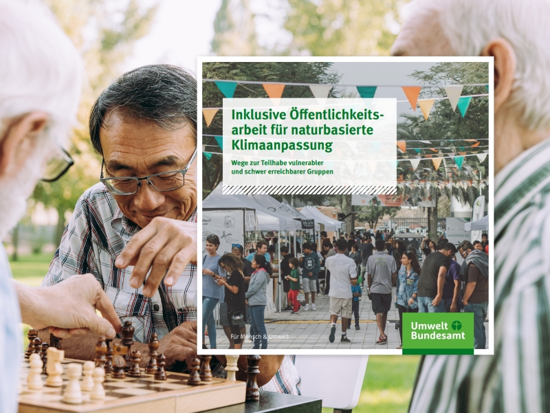 Dieser Leitfaden, der vom Ecologic Institut im Auftrag des Umweltbundesamtes erstellt wurde, bietet Kommunen praxisnahe Orientierung, wie Öffentlichkeitsarbeit zu naturbasierter Klimaanpassung inklusiv gestaltet werden kann. Ziel ist es, neue Zielgruppen für naturbasierte Lösungen und Klimaanpassung zu begeistern – und sie aktiv in damit verbundene Aktivitäten einzubeziehen.